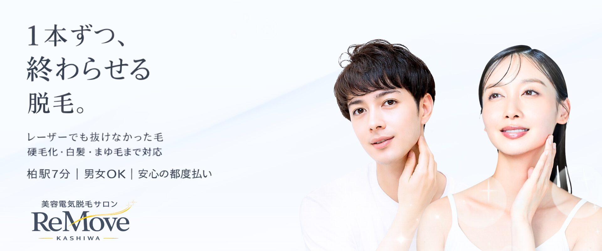 当店は千葉県柏駅から徒歩7分にある【男性・女性】ご利用可能な美容電気脱毛専門サロンです。