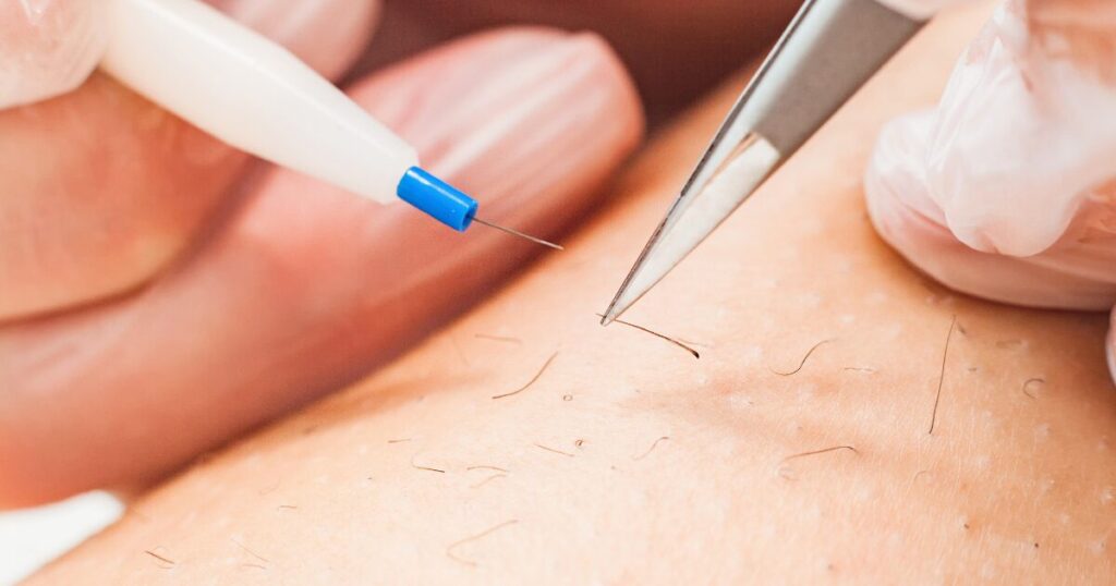 美容電気脱毛とは、毛根1本1本にプローブ(先端が丸く加工されている極細の器具)を挿入し、微弱な電流を流すことで毛の再生機能を低下させる脱毛方法です。
